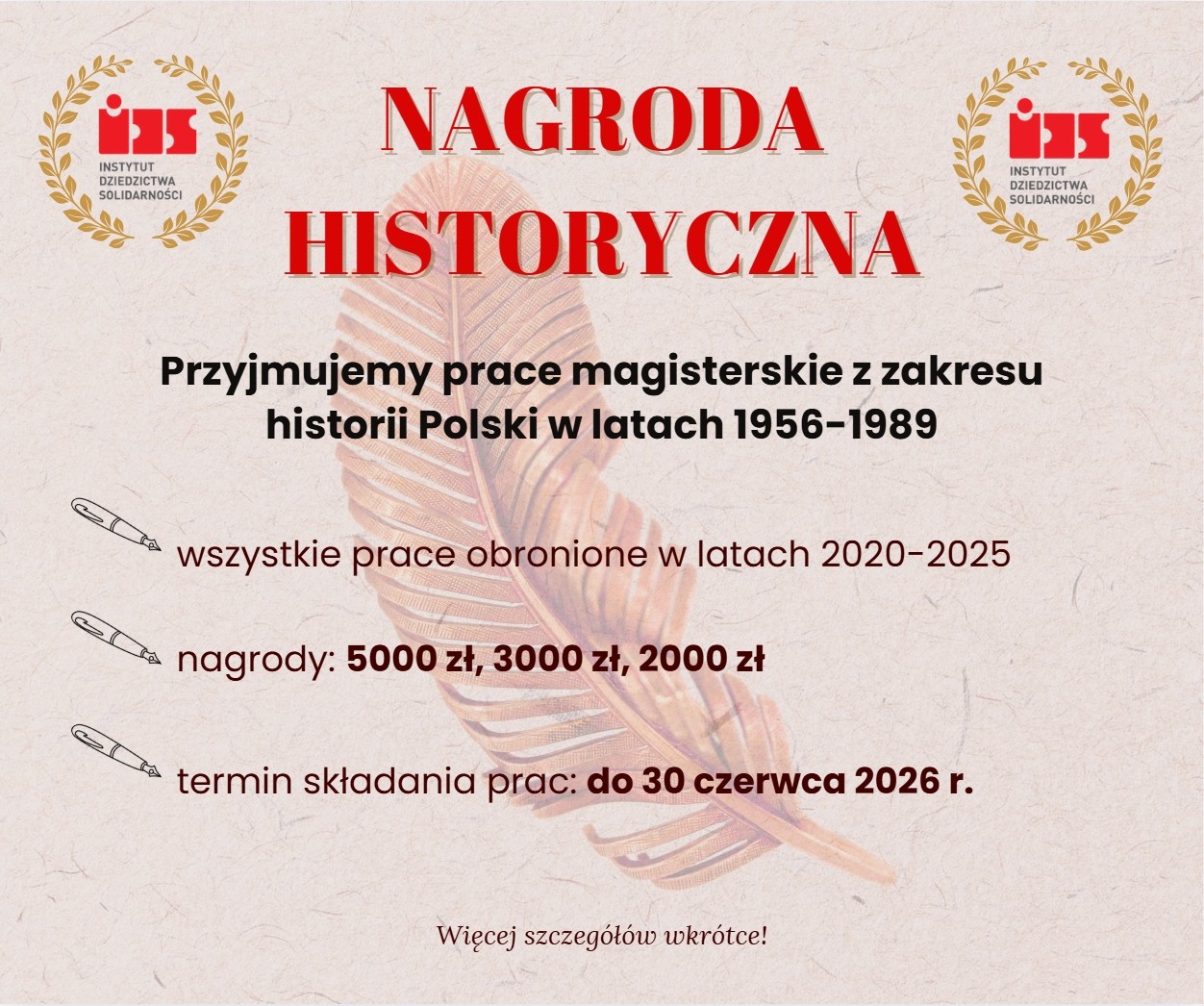Ruszyła druga edycja konkursu o Nagrodę Historyczną IDS, która promuje najciekawsze opracowania dotyczące historii Polski z lat 1956–1989. Inicjatywa skierowana do autorów prac magisterskich to