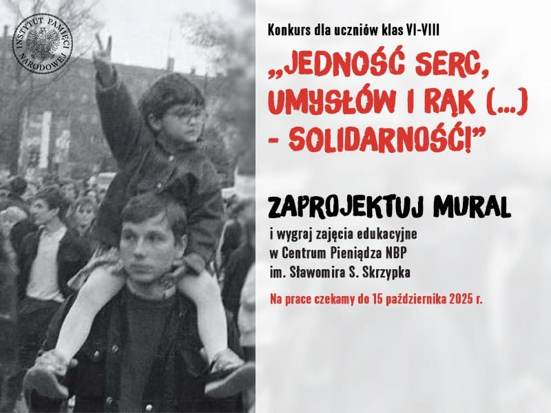 Biuro Przystanków Historia IPN zaprasza uczniów klas VI-VIII szkół podstawowych do udziału w ogólnopolskim konkursie na grupowy projekt muralu „Jedność serc, umysłów i rąk (…) Solidarność!”. Celem konkursu jest upamiętnienie Bohaterów wydarzeń sprzed 45 lat oraz popularyzacja wiedzy na temat…